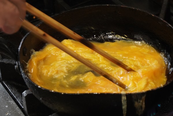 フライパンを揺らしながら、仕上げていく。