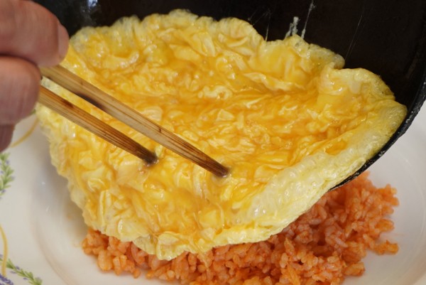 とろとろとろ~りの半熟卵のオムライスの完成。
