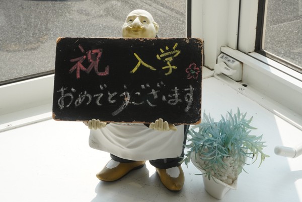 窓辺には、スタッフより愛のこもったメッセージボードがあり、取材日は、入学式が多く行われていたので、お祝いメッセージ♪だった。