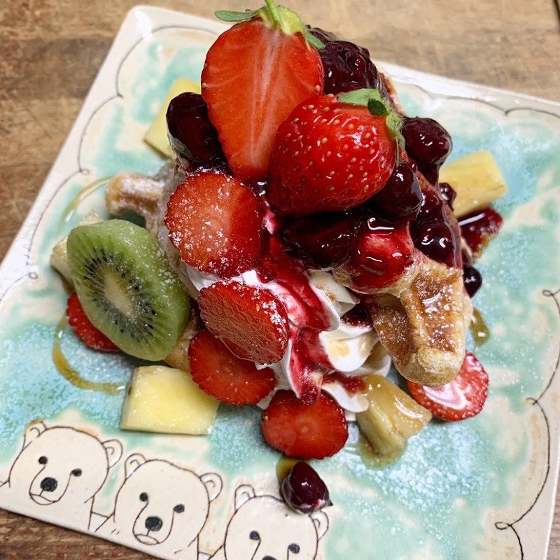 食感が楽しいワッフルシュガー入りの自家製ワッフル(800円)。