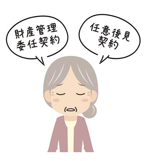 財産管理委任契約とは、財産の管理や療養看護の事務手続きを委任する契約で、その後の任意後見契約の開始は本人の判断能力低下後に限られます。