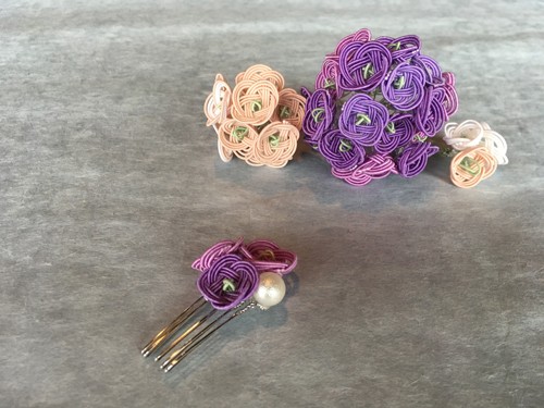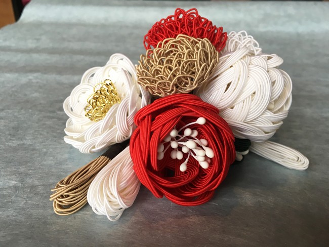 もともとアクセサリーや服など、ものづくりが好きで、特に伝統的なものにひかれ、水引にも興味を持ち独学で創り始めた。水引は「色や形に意味があり、色の豊富さとリボンや因州和紙などの他素材との組み合わせも面白く、失敗してもやりなおせる柔軟さもあるところが魅力」と話す。基本の結び方にアレンジを加えたオリジナルの造形は、見ているだけでワクワクするが、装いにプラスすることで、より気持ちが上向く。
