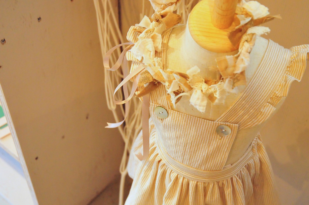 写真のジャンパースカートは、ショップを立ち上げた当初から製作している思い出のデザイン。