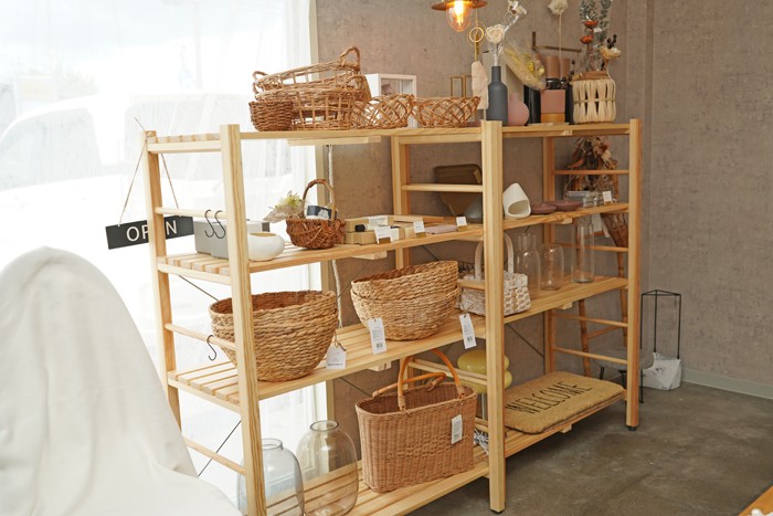 話題の品をセレクトすることもあれば、例えば、花を使ったハンドメイド品を扱う時には花器を並べるなど、購入した人が家に持ち帰って飾る時のイメージがしやすいようにそろえることもあるそう。