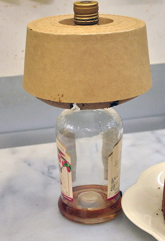 ※型の中央が高くなっていないタイプなら、首が細くて長い瓶を使って(写真(3))。
