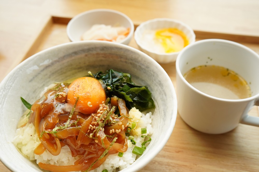 人気No.1メニュー「寒シマメ漬け丼」(1,078円)をいただく。寒シマメはスルメイカのことで、海士町のソウルフードだそう。イカにショウガがさっぱりと合い、卵が絶妙にマッチし箸が進む!