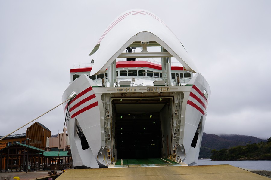 七類港より9:30発のフェリーに乗船。船内は「酔いやすいから寝転んでいるといいよ!」というアドバイスに従って過ごす。