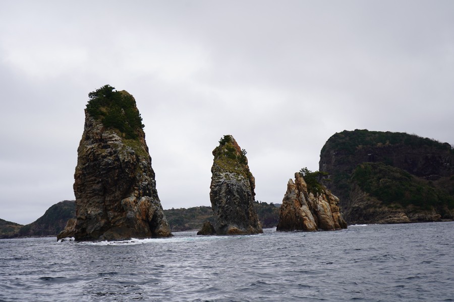島から見るのとは違って船だと大接近できるので、岩肌のごつごつしている感じまで見ることができ、自然が作り出した美しさを一層感じることができて感動。