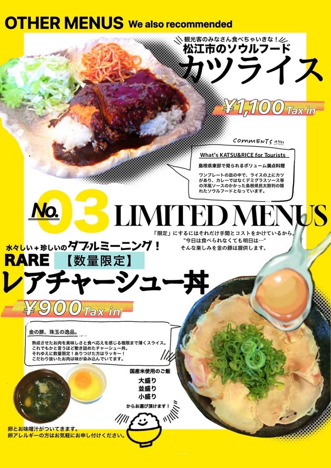 今までにはない低温調理法で新食感とんかつを提供しております。一品お頼みのお客様につきサービスでカレー、冷汁、かき氷もついてお手軽なお値段で販売しております。