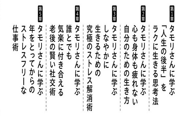 無理をしない、年をとったら聞き役に徹する、反省や後悔はしない……など、タモリさん流「がんばらない人生哲学」が満載の一冊。