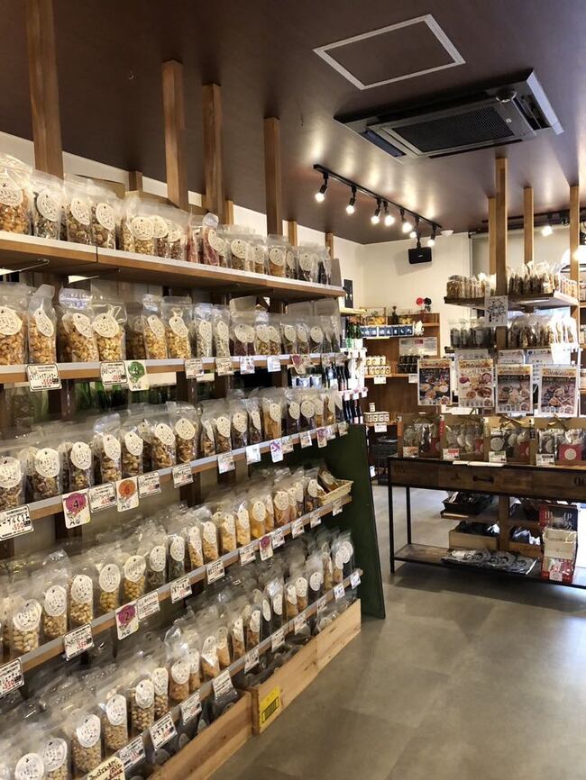 店内に入ると、ずらーっと並ぶおつまみたち。ついつい、あれもこれもと手にとりたくなるお酒好きにはたまらない空間です!おつまみだけでなく子どものおやつにぴったりな商品もあるので、子どもから大人まで幅広くお楽しみいただけます。