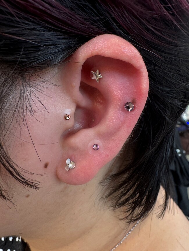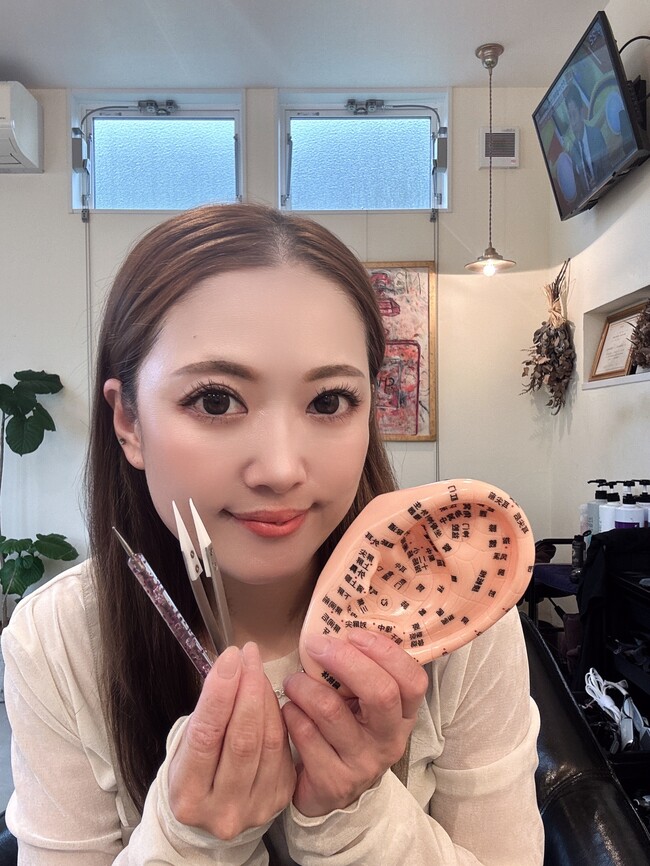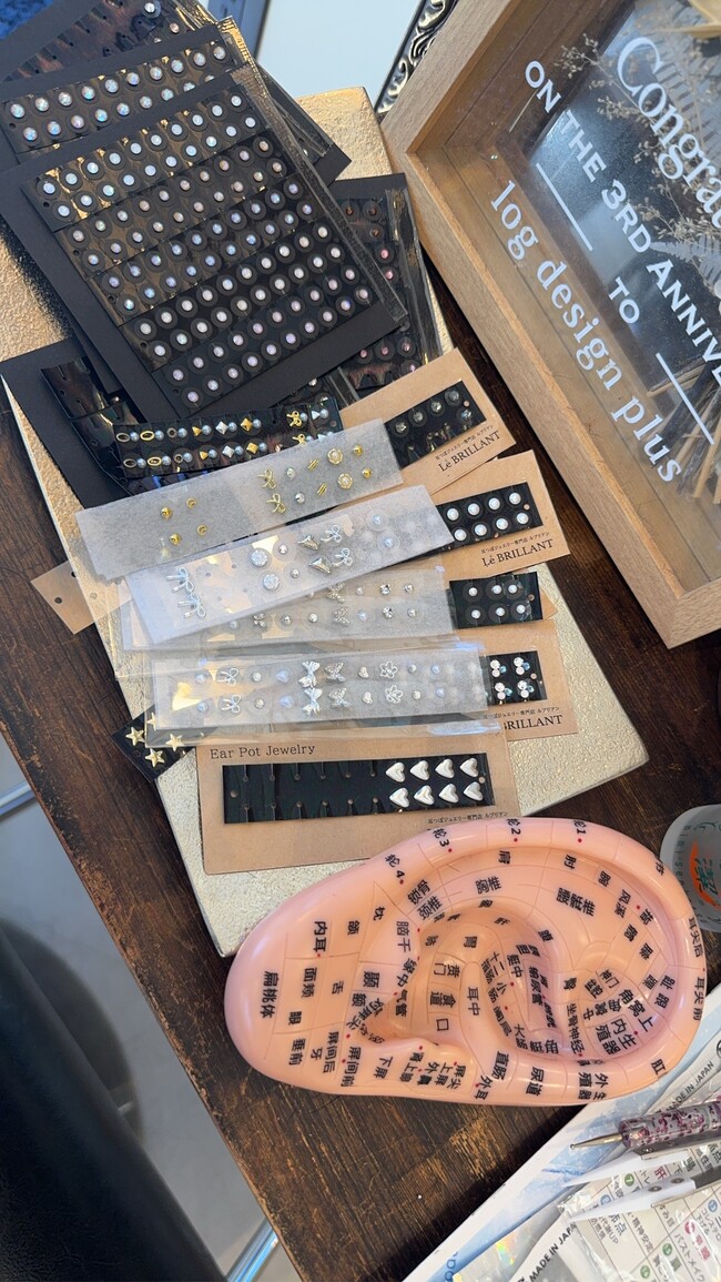 今回プレゼントするのは、今話題の”耳ツボジュエリー”!!耳ツボジュエリーは、耳の特定のツボに小さな金属の粒(通常はチタンや金、銀などの素材)やスワロフスキーなどの装飾的なストーンを貼り付ける形で作られています。これにより、耳のツボを刺激しつつ、見た目もおしゃれでアクセサリー感覚で楽しめるのが特徴です。